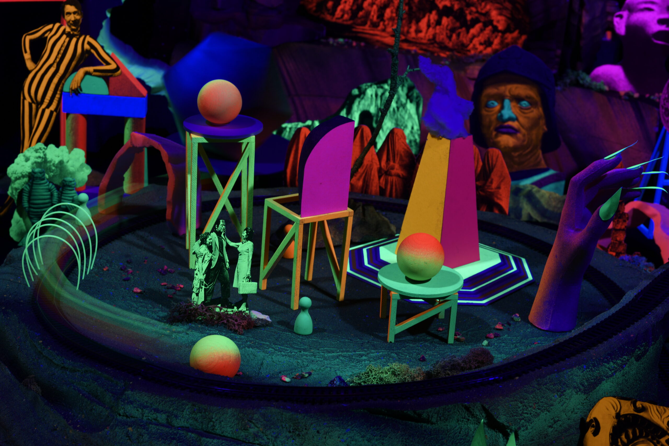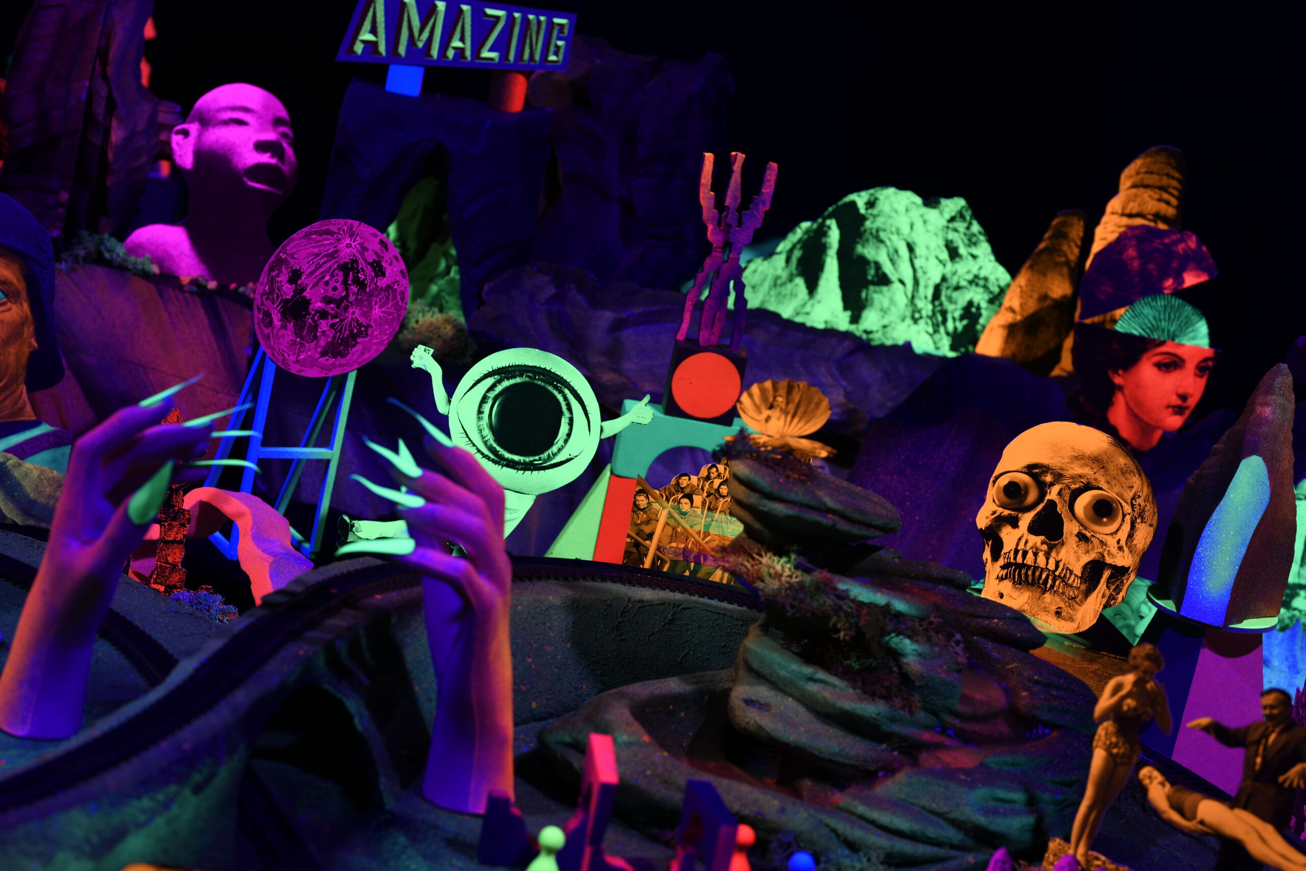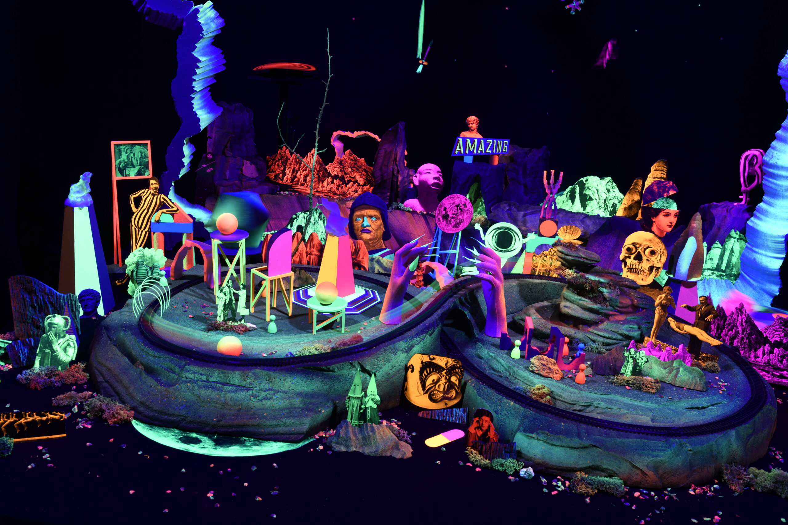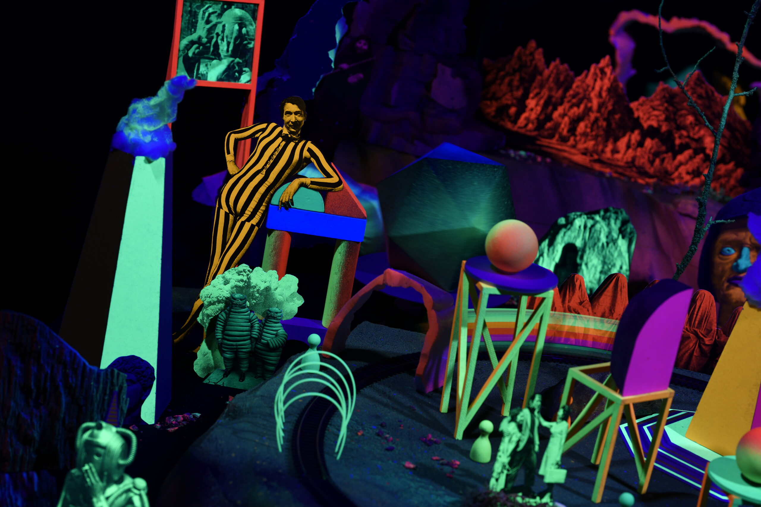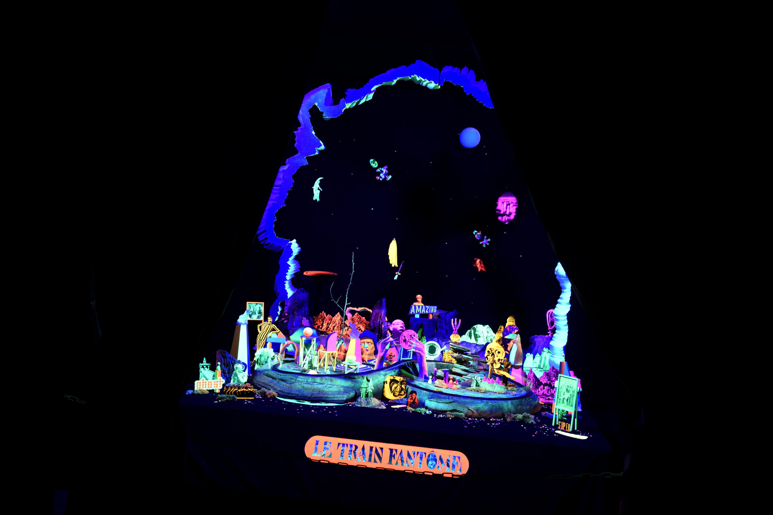 Réalise un travelling (technique de cinéma pour déplacer une caméra) en utilisant un petit wagon comme dans l’installation Train Fantôme, présentée durant les vacances. Chaque participant créera des éléments de décor pour réaliser un film collectif. Si tu le souhaites, tu pourras insérer ta photo dans le décor pour faire, toi aussi, partie des voyageurs.