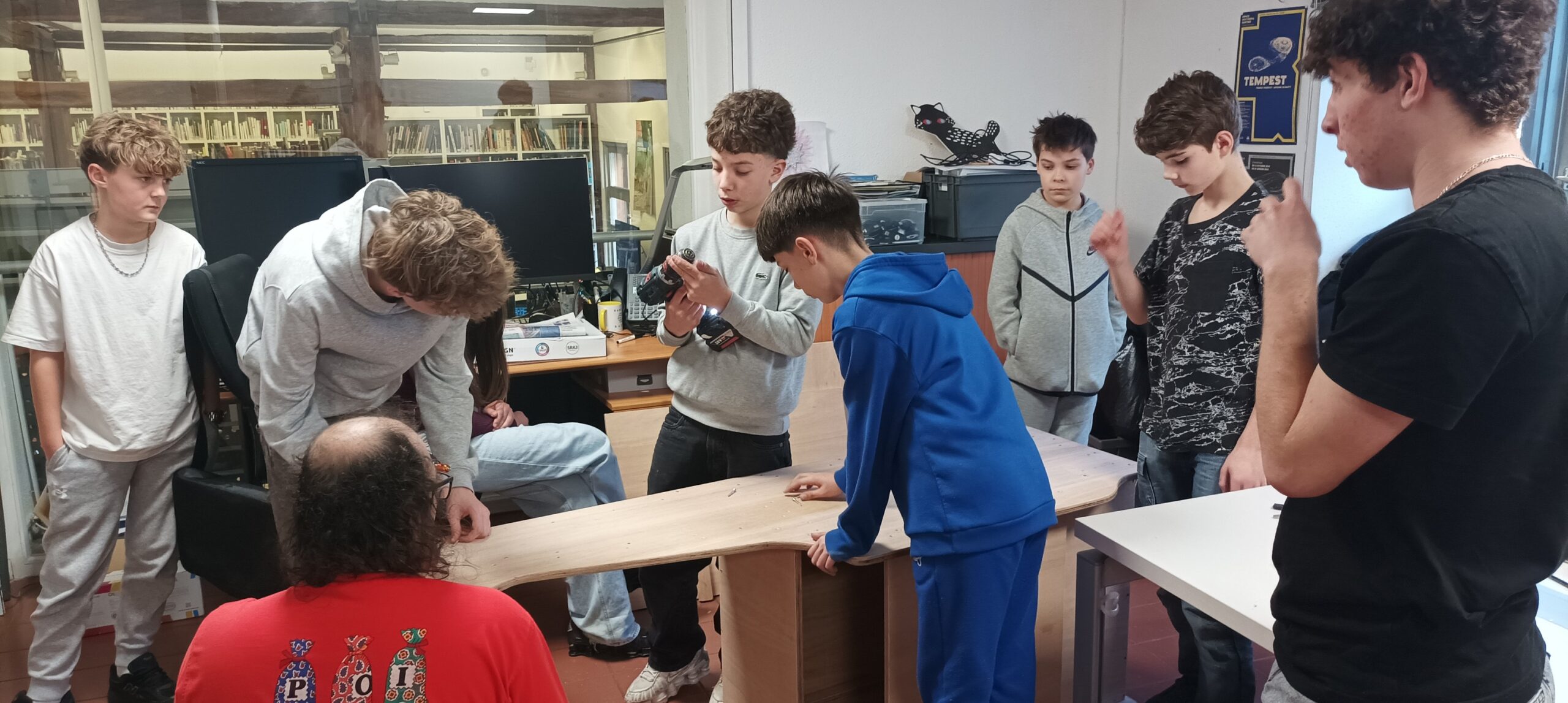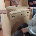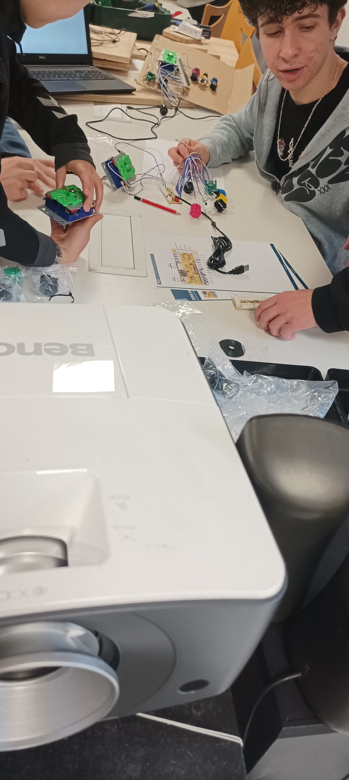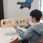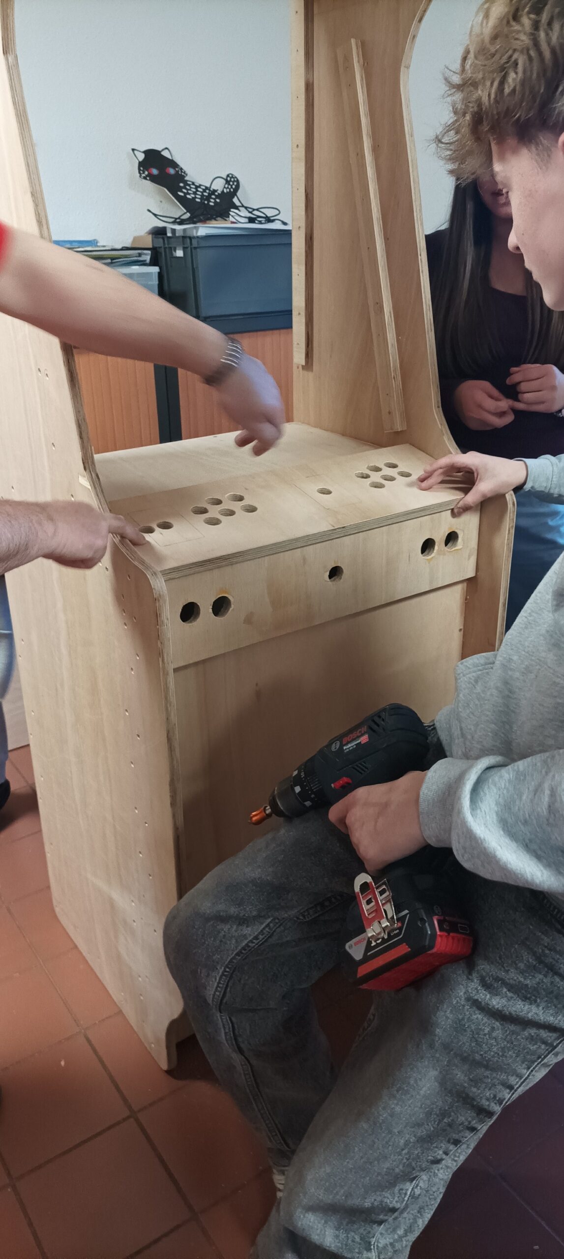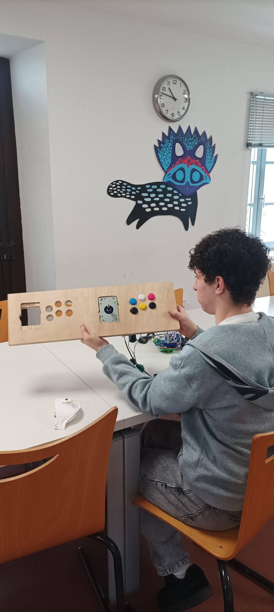 Cet atelier visait à responsabiliser les ados sur la conception d’un projet concret. Les adolescents ont ainsi pu apprendre à utiliser divers outils comme un fer à souder, une perceuse de même que des outils de design comme Inkscape et un plotter de découpe pour décorer cette borne. Cette station de jeu a donc pu être dévoilée durant un évènement organisé par le club ado quelques jours plus tard.