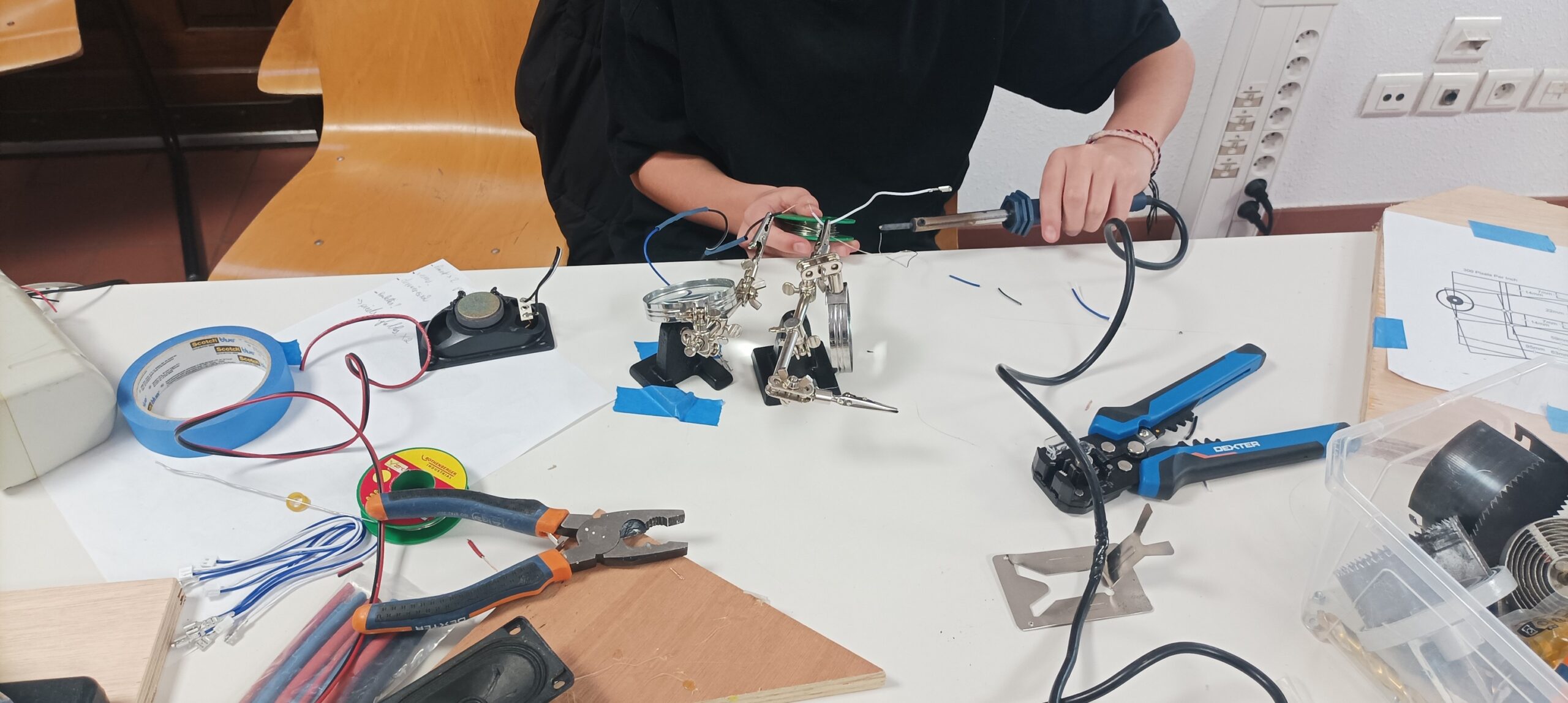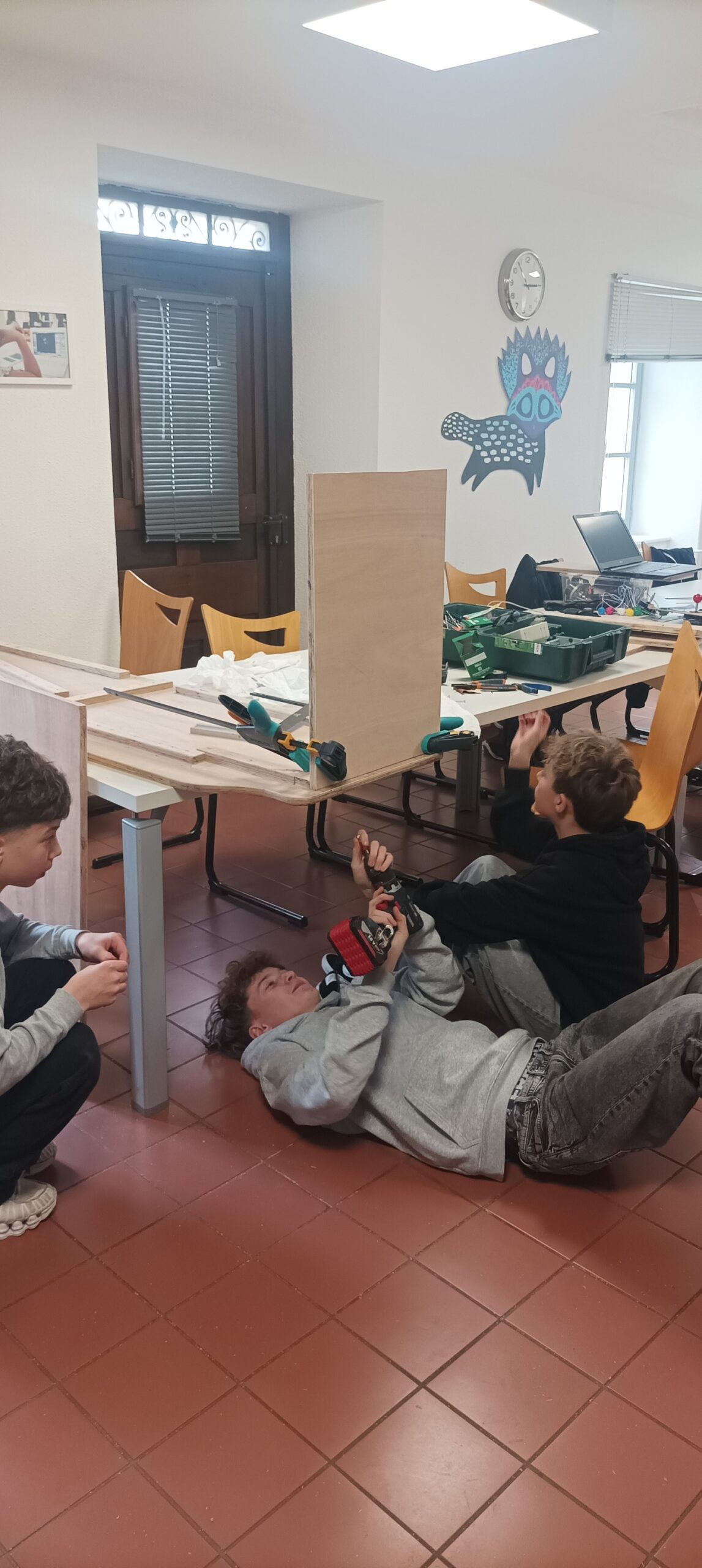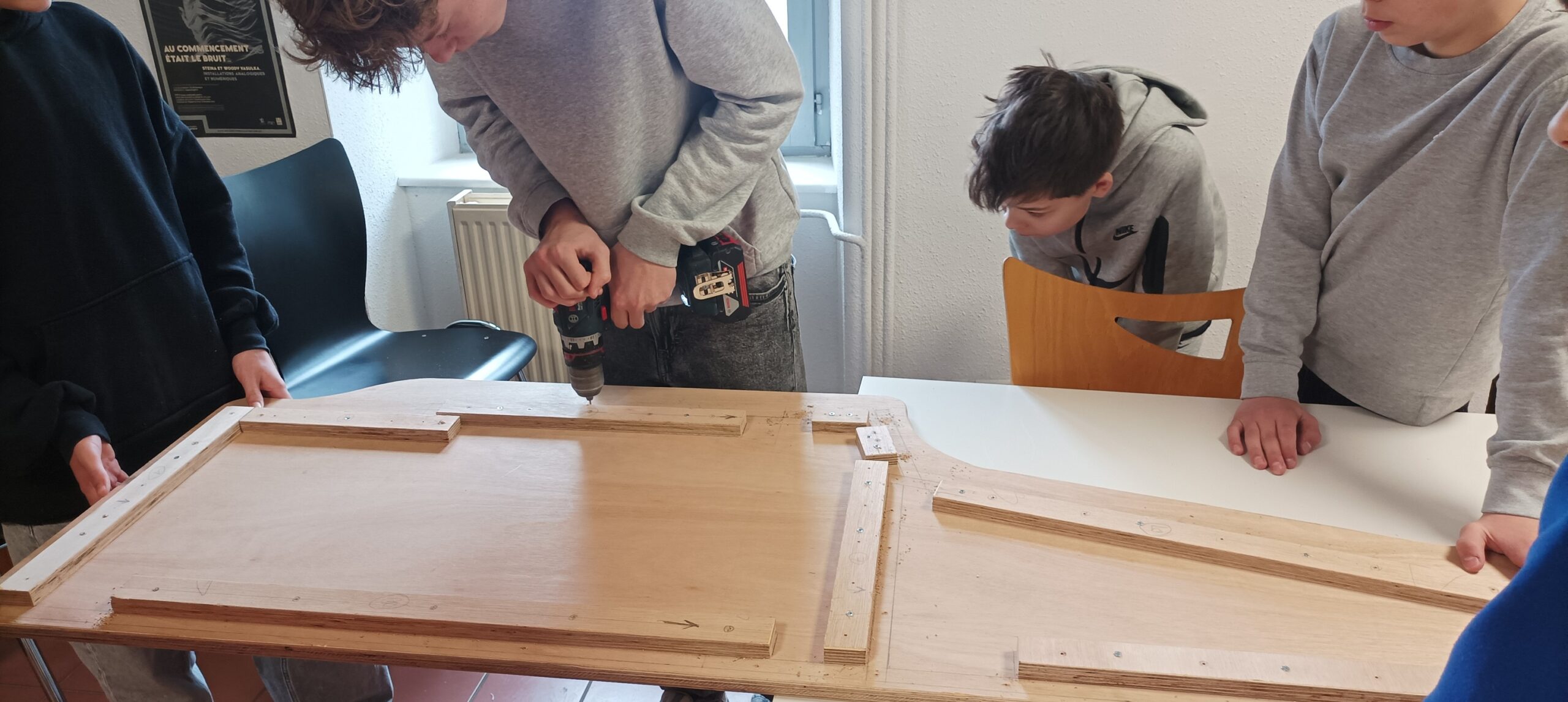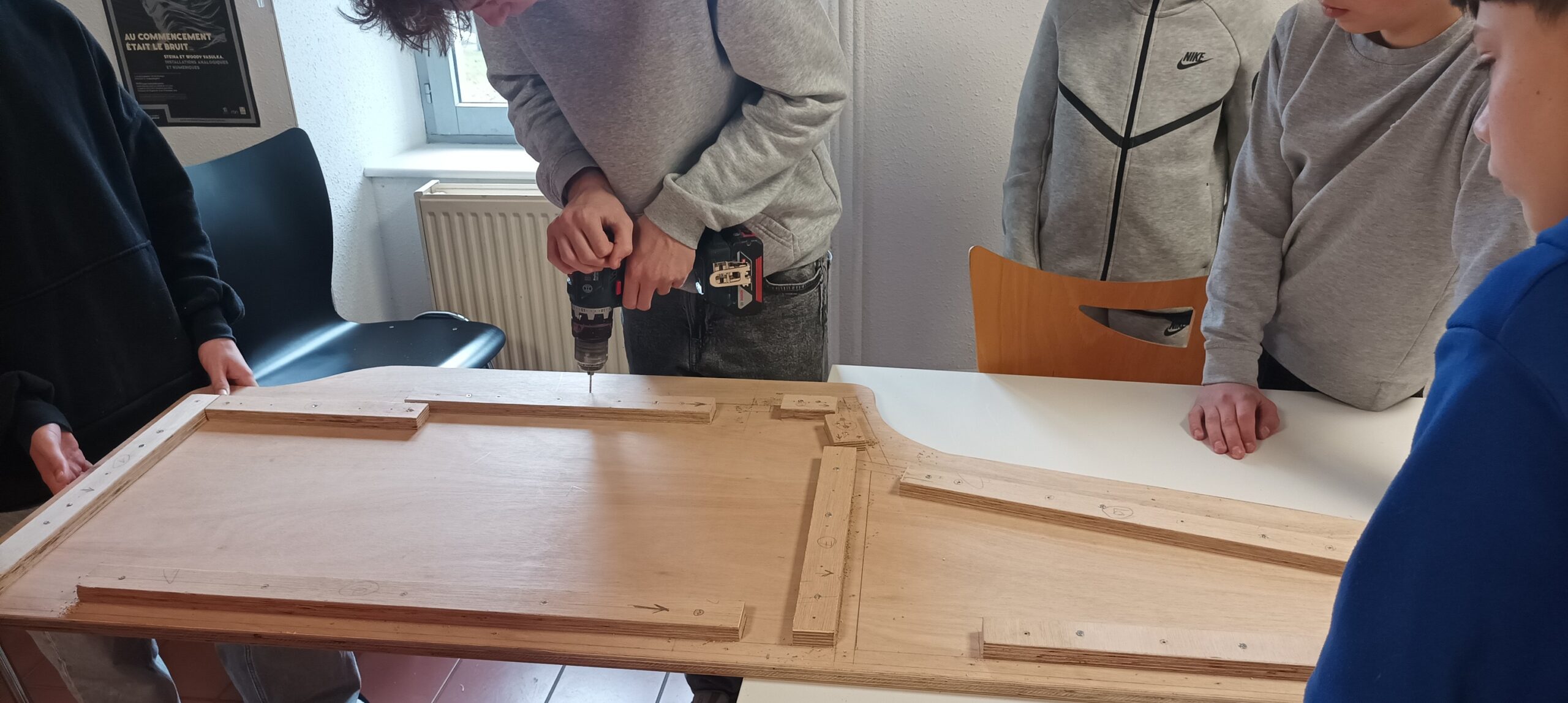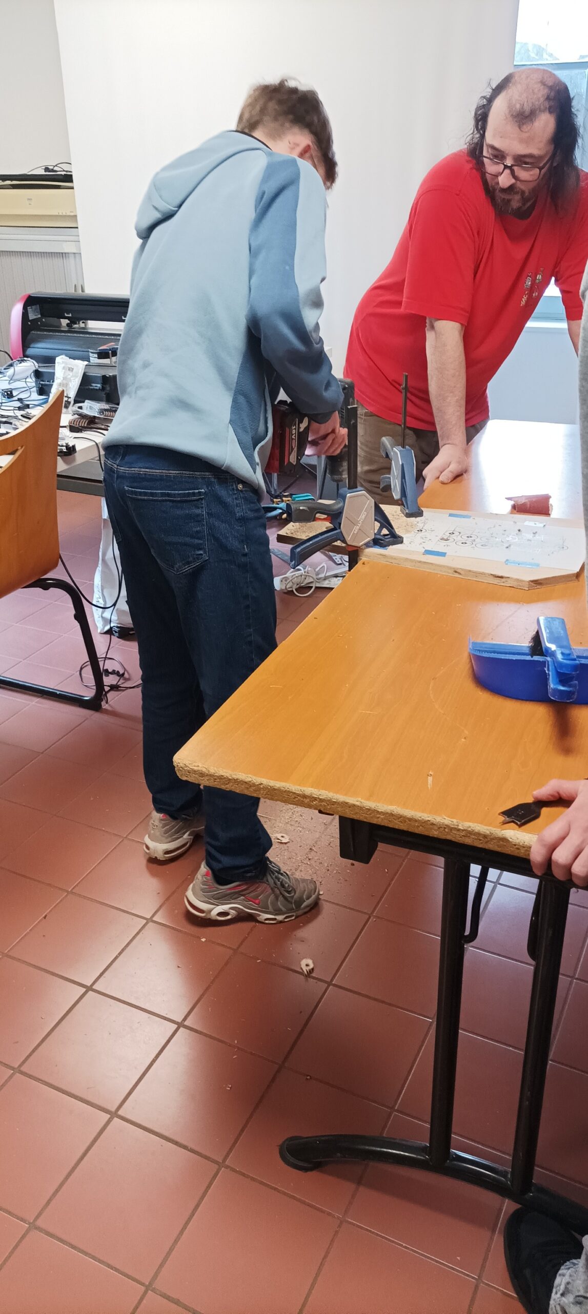 Cet atelier visait à responsabiliser les ados sur la conception d’un projet concret. Les adolescents ont ainsi pu apprendre à utiliser divers outils comme un fer à souder, une perceuse de même que des outils de design comme Inkscape et un plotter de découpe pour décorer cette borne. Cette station de jeu a donc pu être dévoilée durant un évènement organisé par le club ado quelques jours plus tard.